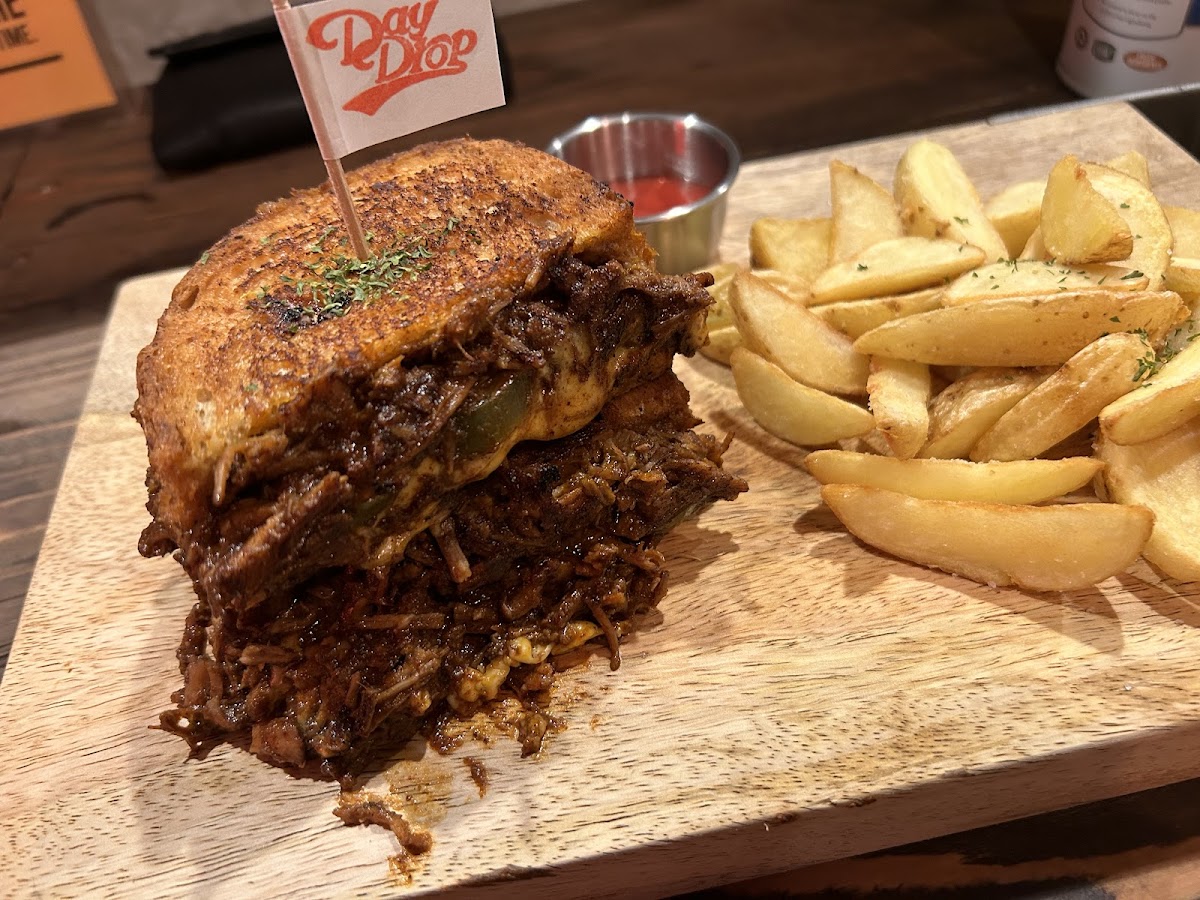 Day Drop's menu is where the real magic happens. Known for its comforting yet inventive dishes, the café serves up a variety of American favorites. You can't miss their various sandwiches, including the mouthwatering Pulled Pork Sandwich, which features tender, slow-cooked pork, bursting with deep, smoky barbecue flavors. For those who love a bit of spice, the Jerk Chicken Sandwich is a must-try, perfectly seasoned and delightful with every bite.